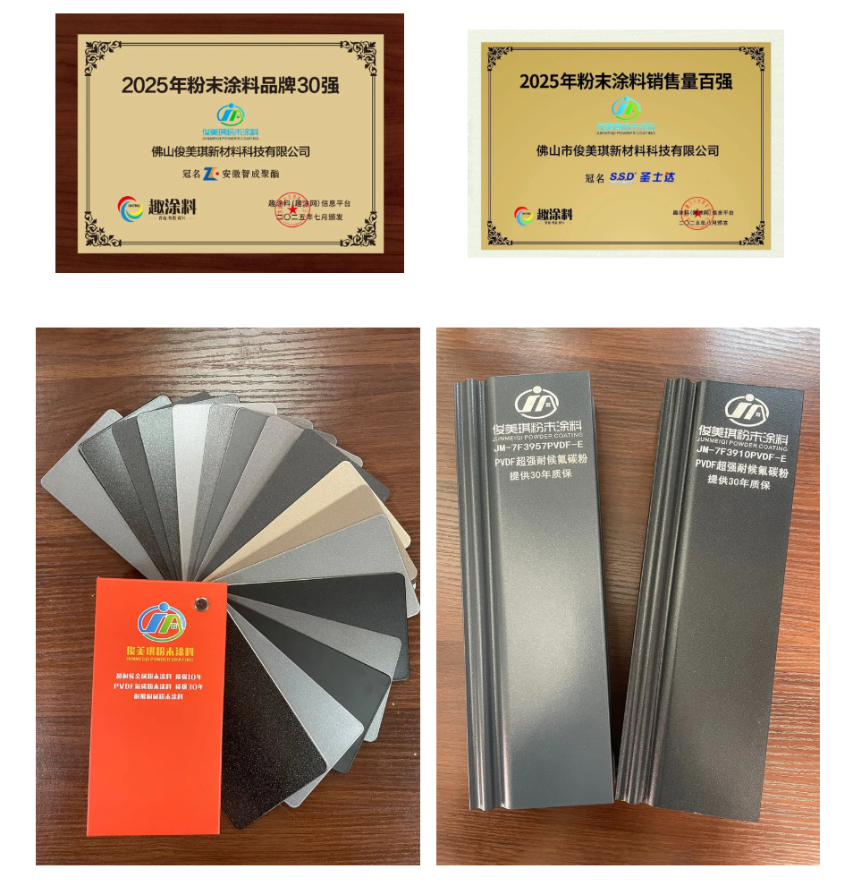始创于2010年的俊美琪,从佛山市南海区里水俊美琪装饰材料厂起步,历经十余载创新发展,已成长为集研发、生产、销售、服务于一体的新型环保粉末涂料制造企业。依托雄厚的技术研发实力与严苛的品质管控体系,公司产品通过欧标QUALICOAT等多项权威认证,核心研发团队沉淀多年行业经验,搭配LS-POP(9)激光粒度分析仪、QUV-紫外荧光灯老化试验仪等完备的检测设备,确保每一款产品都具备卓越性能。