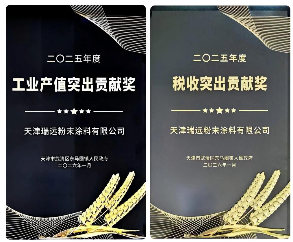 近日,天津瑞远粉末涂料有限公司迎来了令人振奋的喜讯,荣获天津市武清区东马圈镇人民政府颁发的2025年度工业产值突出贡献奖,以及2025年度税收突出贡献奖。这一殊荣不仅是对瑞远粉末过去一年卓越成就的高度认可,更是对其在地方经济发展中发挥重要作用的有力肯定。